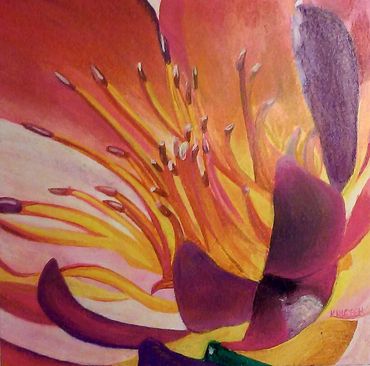 My close up floral or landscape paintings on canvas are inspired by the organic shapes found in nature and are somewhat stylized. I use many layers of acrylic paint and have smoothed out the gradations of color with various mediums. Painting ideas come from inspirations from my travels and walks in nature, photographs I've taken or from my imagination. I display my work at various art festivals and previously in galleries in Kansas City, Missouri, Taos, New Mexico, Overland Park, Kansas, Phoenix, AZ etc. I've drawn or painted my whole life. Commissions are welcome.